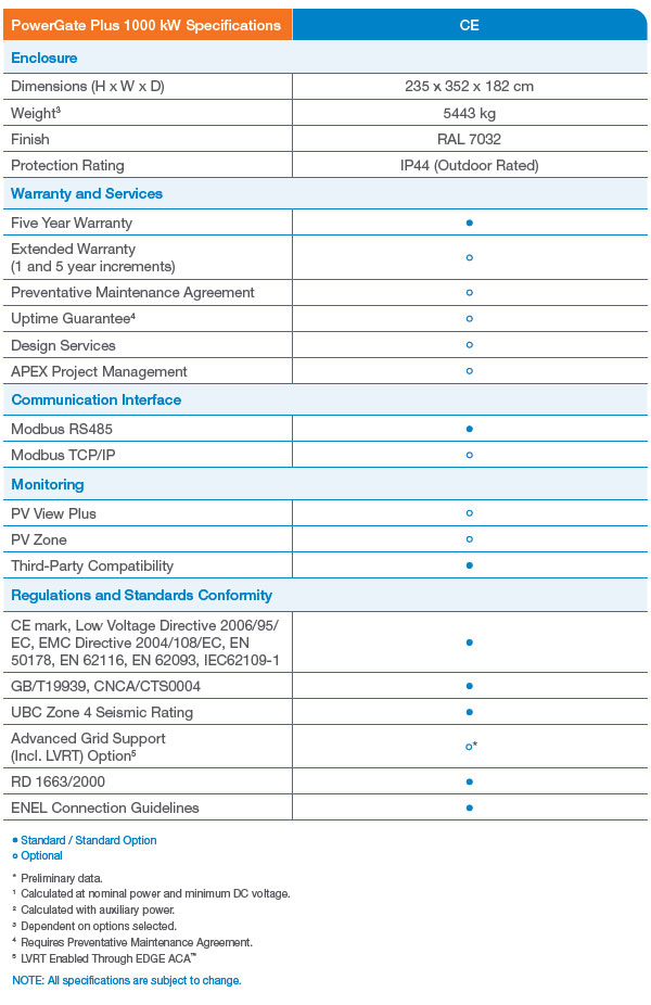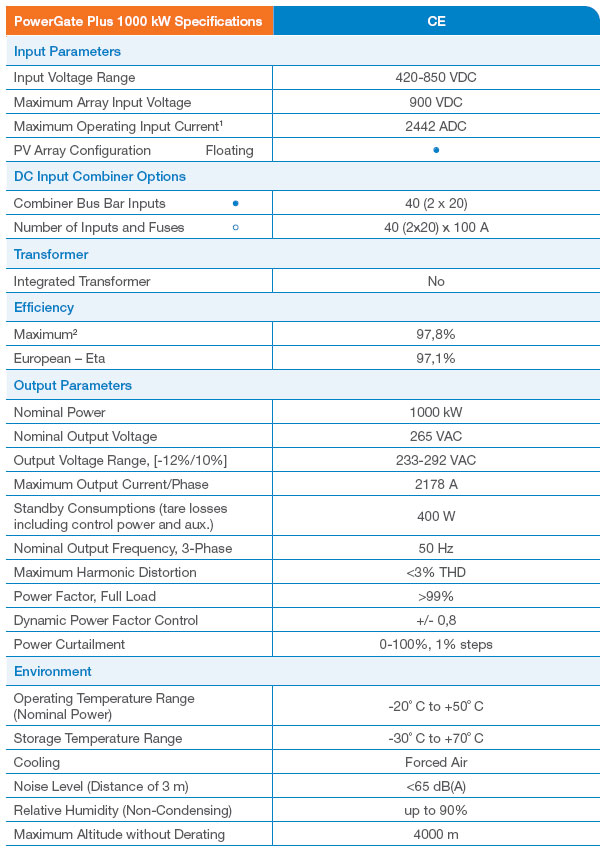 The Satcon¢ç PowerGate¢ç Plus 1000 kW PV inverters have a significant impact on the profitability dynamic of large-scale solar PV systems. With its system intelligence, next-generation EDGE¢ç MPPT technology and industrial-grade engineering, the PowerGate Plus 1000 kW inverters maximize system uptime and power production, even in the harshest environments.